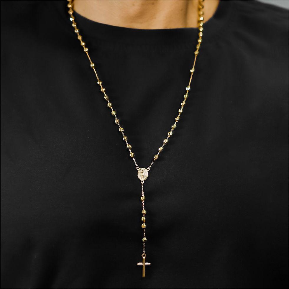 Explora nuestra colección de gargantillas y rosarios en Joyería Caracas, donde cada pieza es una declaración de fe y estilo. Forjadas en oro 18k, nuestras gargantillas y rosarios son el complemento perfecto para cualquier atuendo, reflejando tradición y modernidad. Encuentra tu joya ideal y lleva un símbolo de devoción y elegancia.
